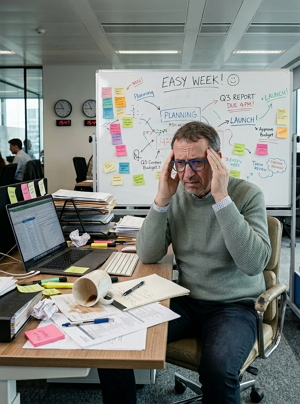 En voor je het weet zit je drie weken later met koude koffie en een deadline die je aankijkt als een teleurgestelde collega.